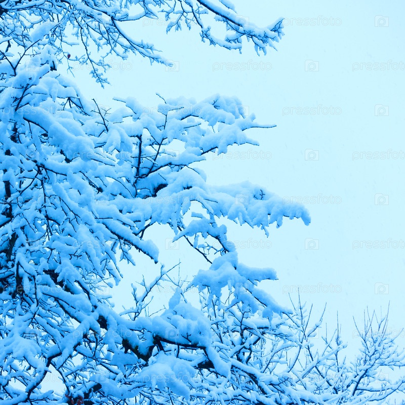 Ветви с большим количеством снега зимой