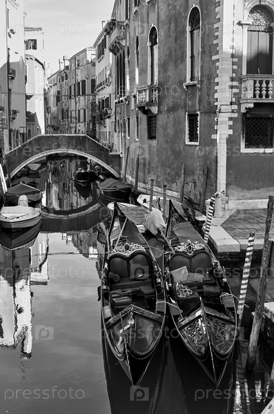 Канал Венеции с пришвартованными гондолами