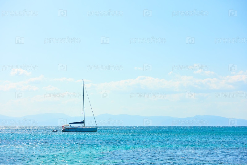 Парусная яхта в море - морской пейзаж