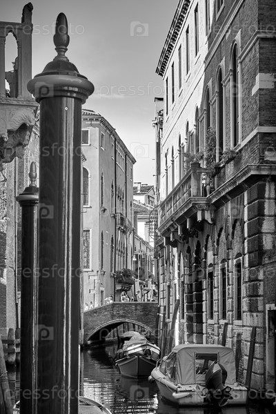 Венецианский канал с причалами и моторными лодками