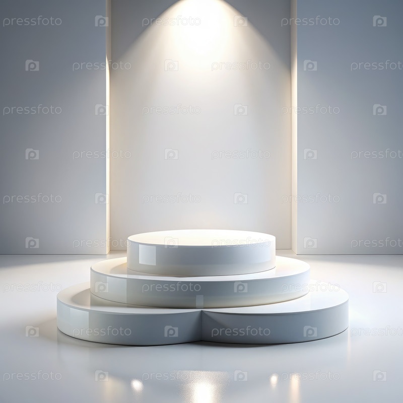 Подиум белого продуктового дисплея с освещением на белом фоне