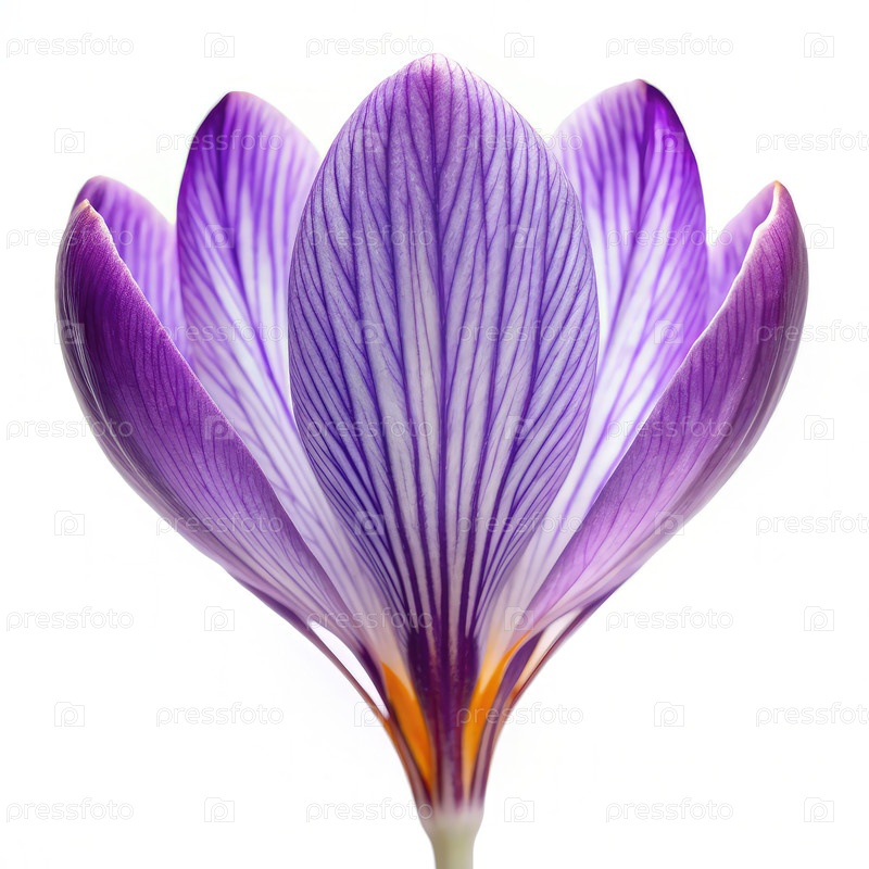 Ближайшее изображение лилового лепестка крокуса, выделенного на белом фоне