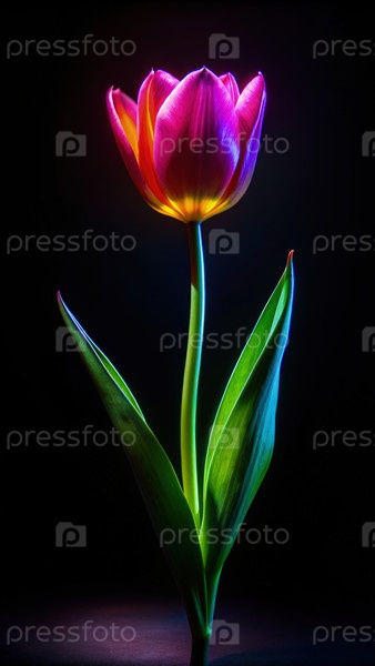 Один неоновый тюльпан в темноте. генеративный ИИ A