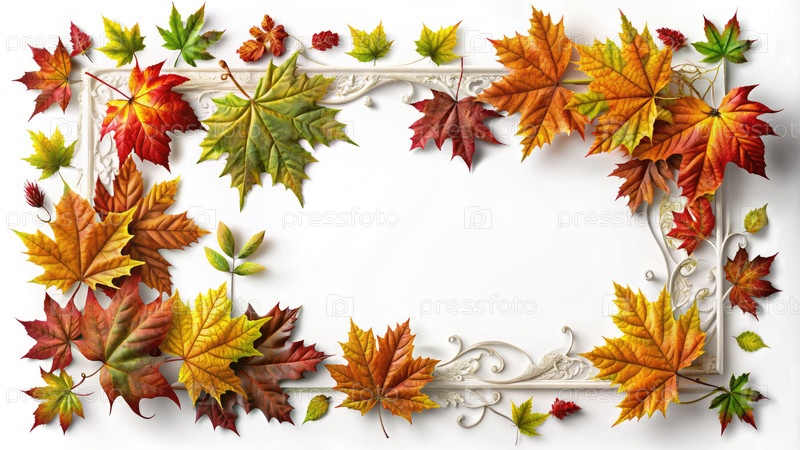 Осенние листья составляют рамку на белом фоне