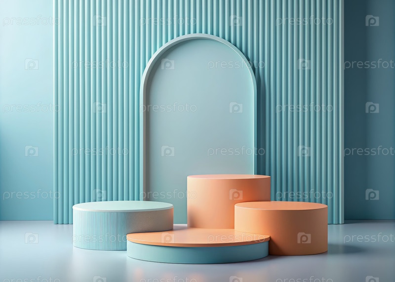 Минималистские пастельные голубые подиумы с арочным фоном