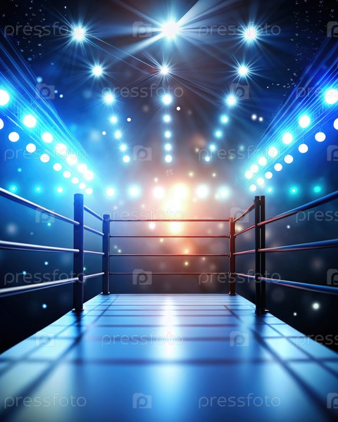 Пустое боксерское кольцо под яркими огнями