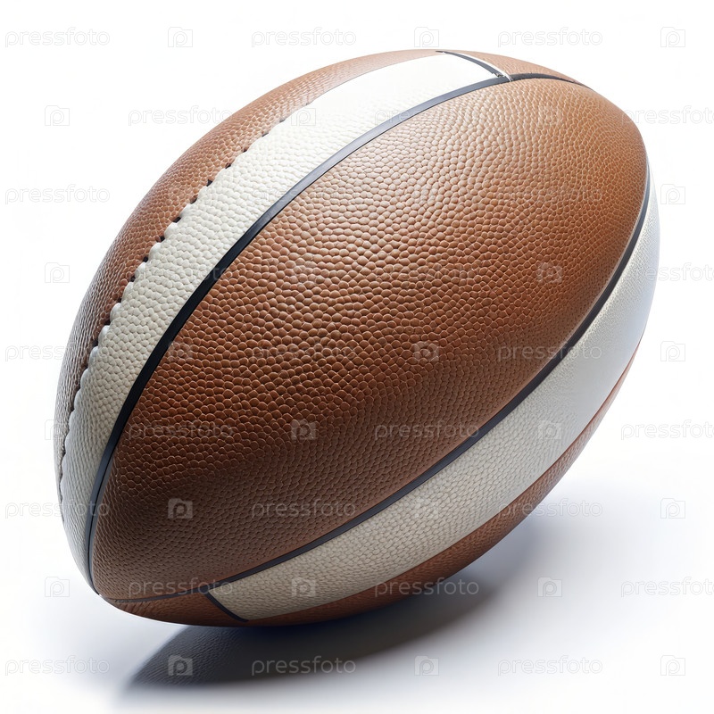 Ближайшее сближение коричневого и белого мяча для регби на белом фоне