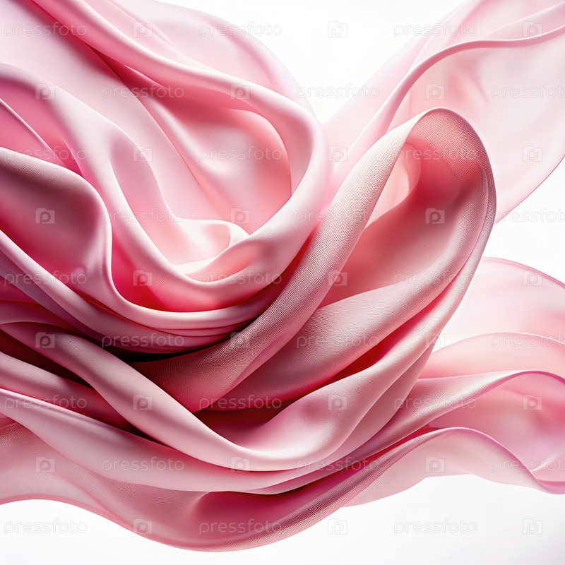 Розовая атласная ткань обтянута и течет на белом фоне