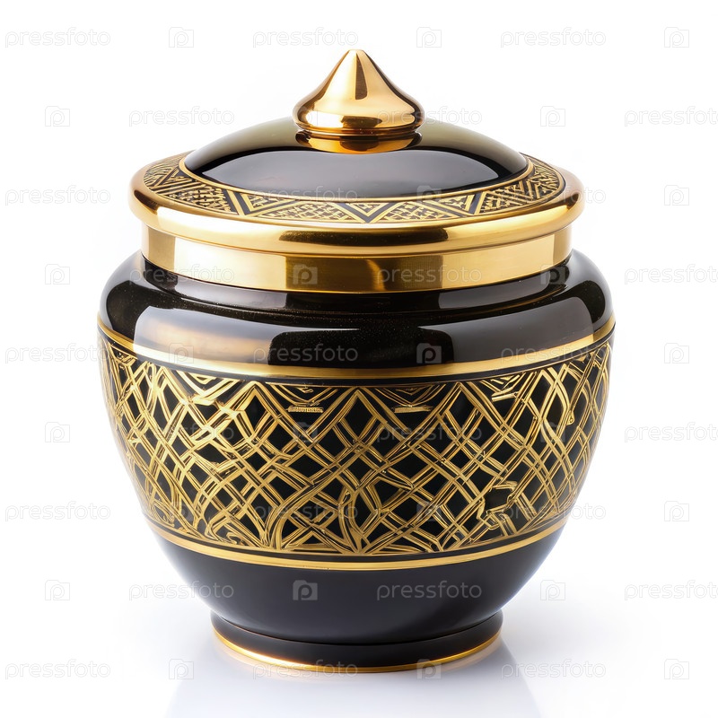 Черно-золотая декоративная банка для меди со сложным дизайном. генеративный AI