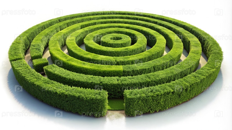 Круговая зеленая жировая лабиринтная топиария на белом фоне. генеративный AI