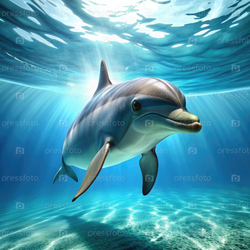Любопытный дельфин плавает под водой на солнце