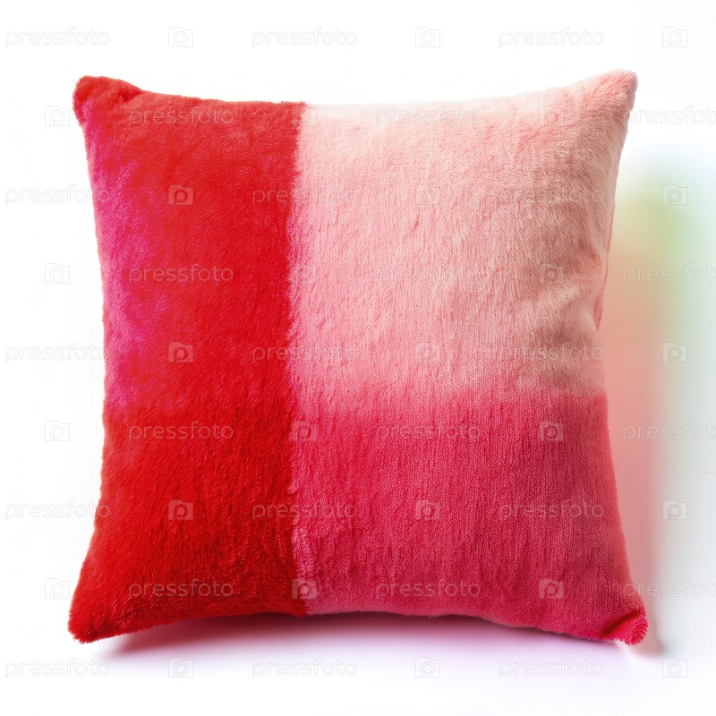 Розовая и красная плюшевая подушка на белом фоне