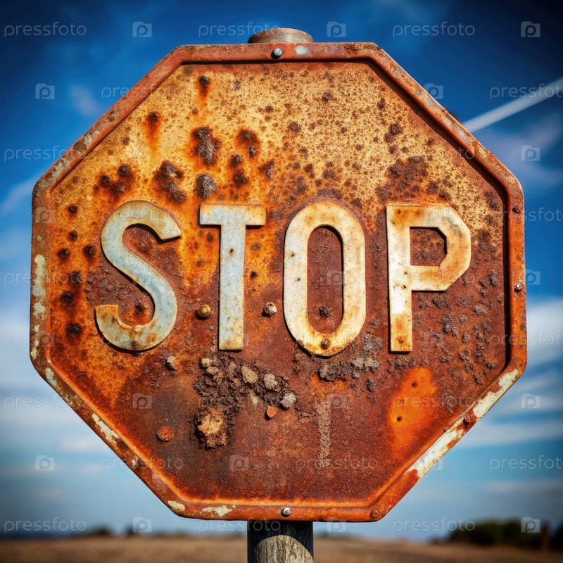 Рusty Stop Sign Against Blue Sky. генерирующий ИИ