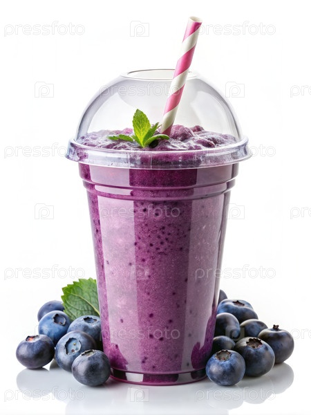 Холодный голубиновый смузи в одноразовой чашке со сломкой