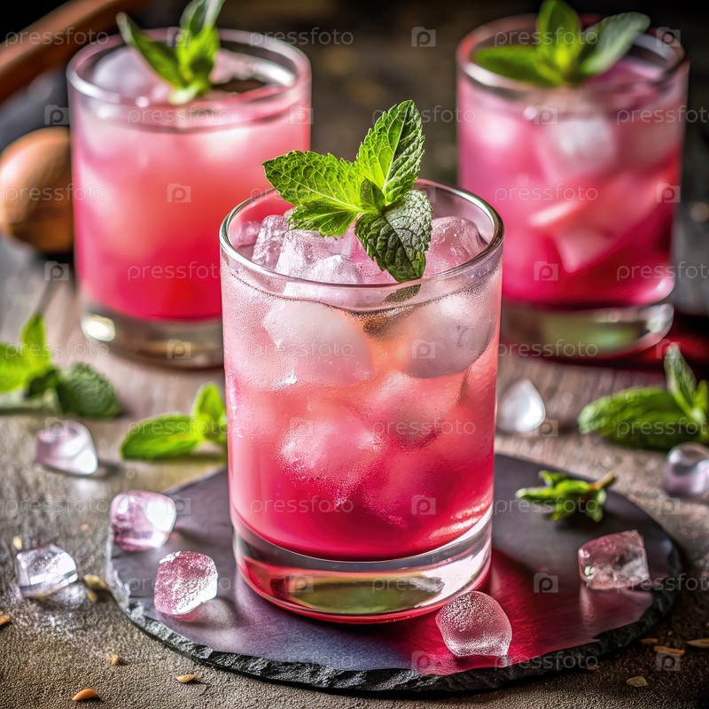 Освежающий розовый коктейль с мятой на деревянном столе