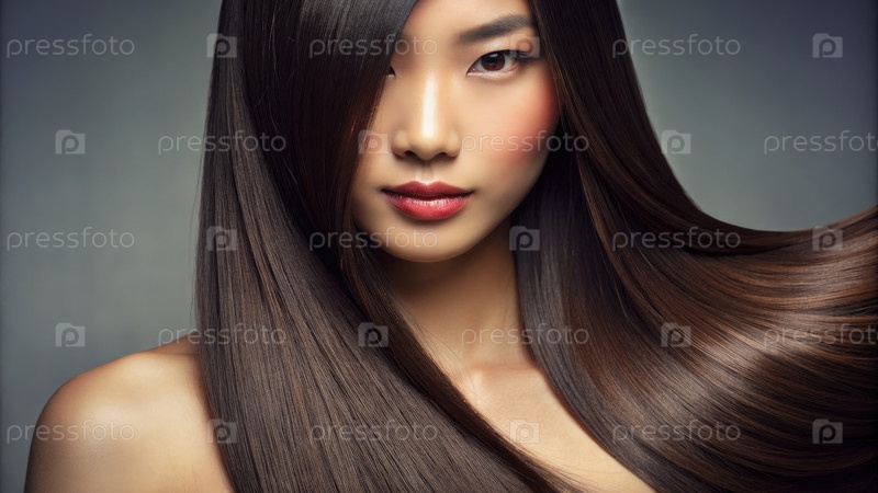Близкий портрет женщины с длинными, прямыми черными волосами