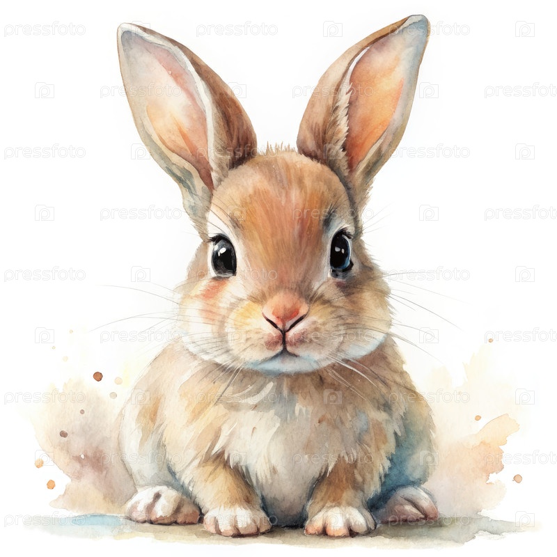 Акварельная живопись маленького коричневого кролика, сидящего на белом фоне