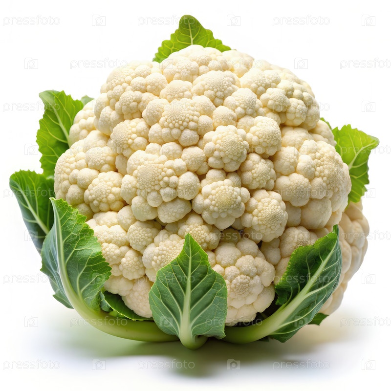 Свежая свежецветная капуста с зелеными листьями на белом фоне