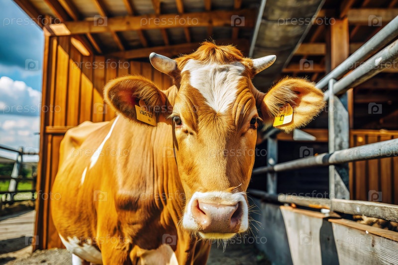 Ближайшее изображение коричневой и белой коровы в сарае
