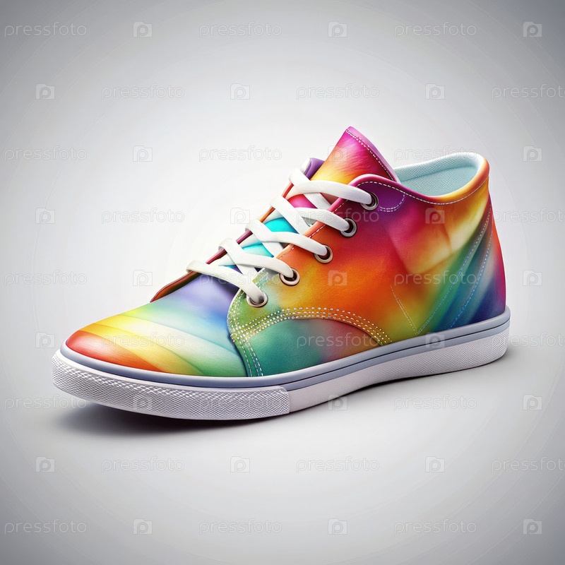Радужная галстук-окраска полотна Мокет обуви на белом фоне