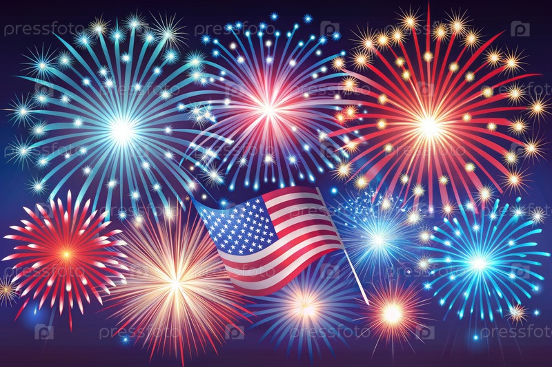Праздничное четвертое июля фейерверк с американским флагом