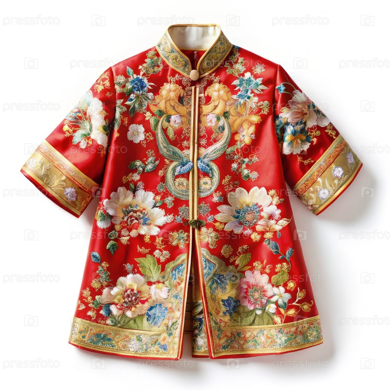 Изящно вышитый красный костюм Тан с сложными цветочными рисунками
