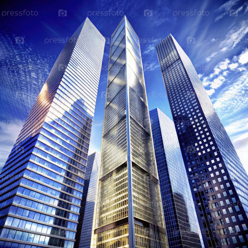 Небоскребы, достигающие неба в солнечный день. генерирующий современный ИИ