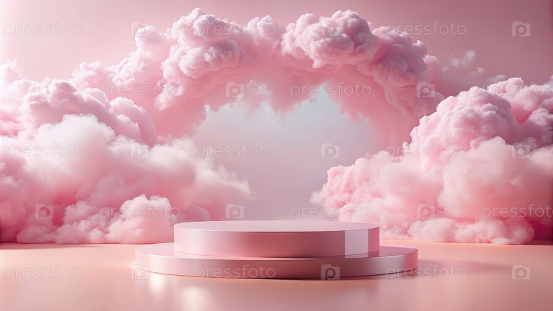 Подиумный дисплей с пушистыми облаками. генеративная розовая ИИ