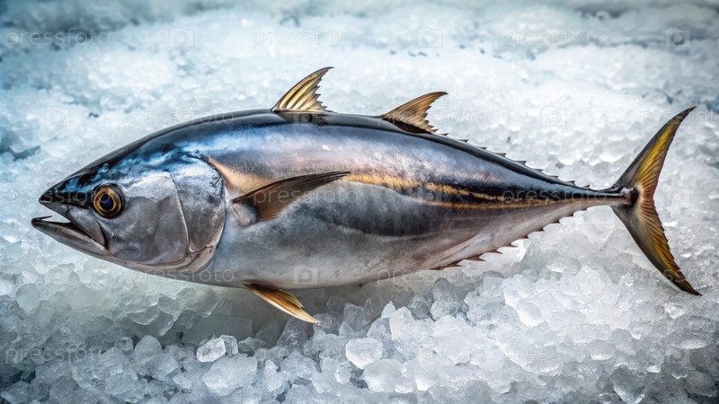 Свеже пойманный синий тон на льду. генеративная ИИ