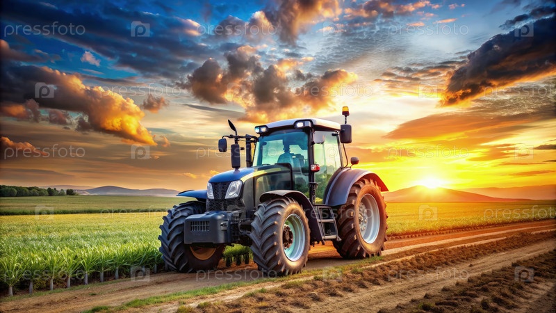 Трактор, проезжающий по поле на закате. генеративный современный ИИ