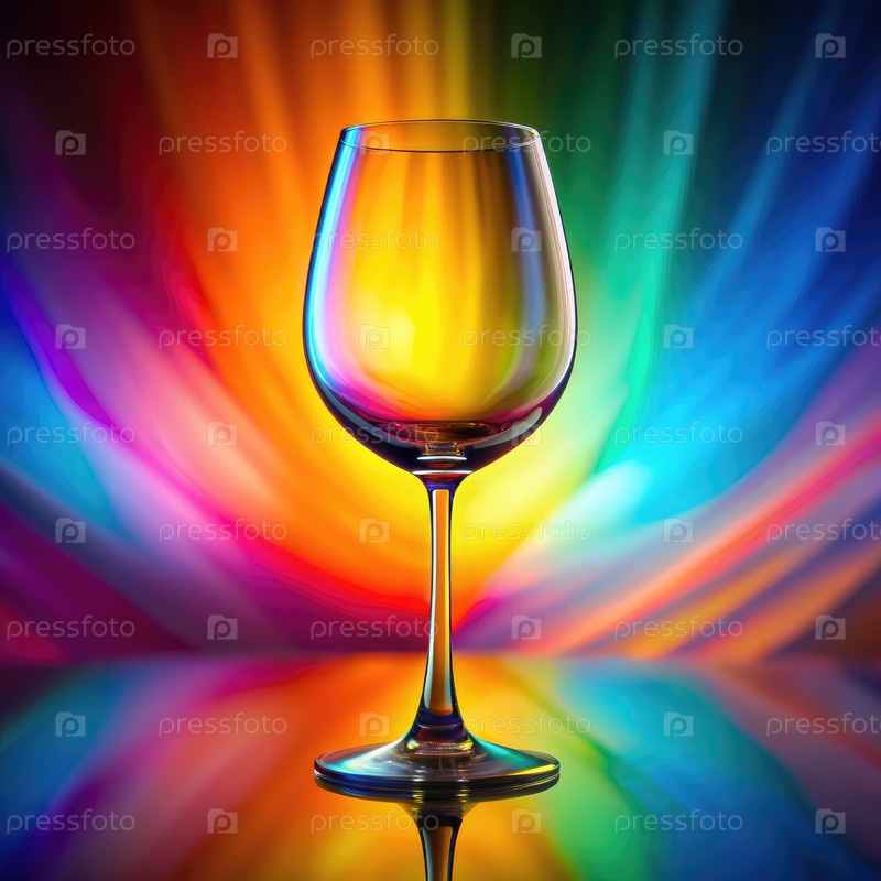 Мокет пустого бокала для вина на красочном фоне