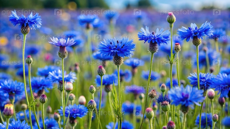 Цветы кукурузы, цветущие в поле в солнечный день. генеративная синяя ИИ