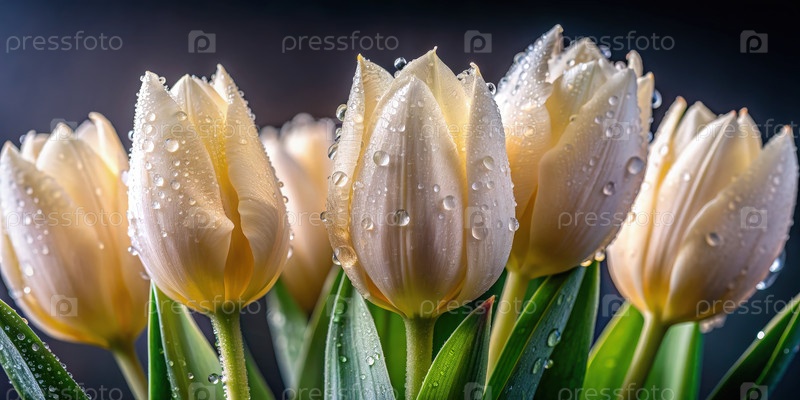 Покрытые росой сливочные тюльпаны в ближайшем изображении