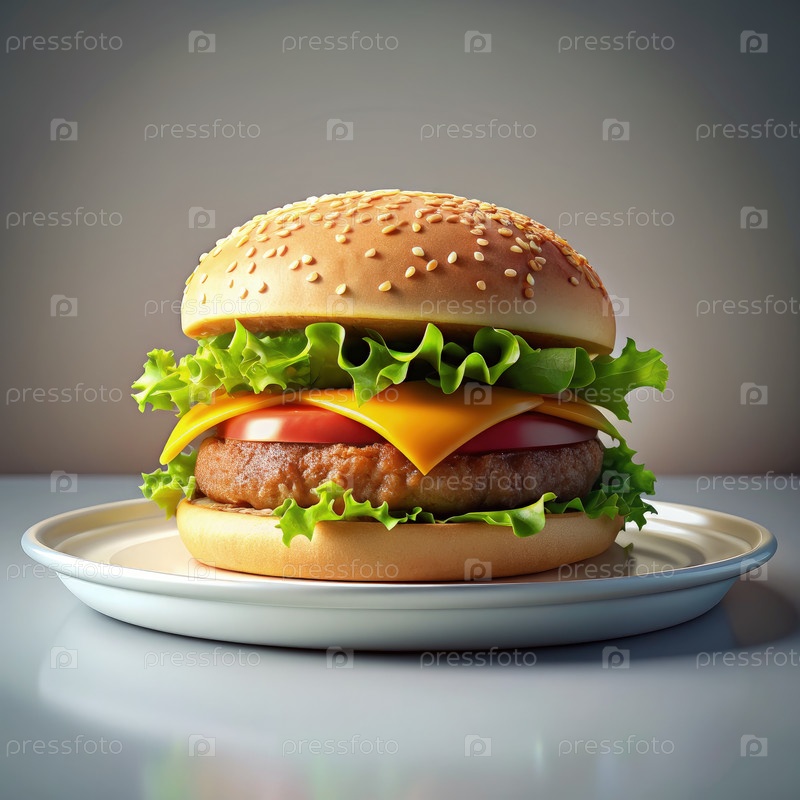 Классический чизбургер на тарелке на светло-сером фоне