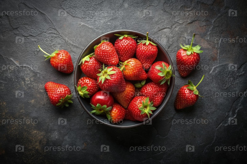 Чашка свежих клубники на черной поверхности сланца. генеративный ИИ A