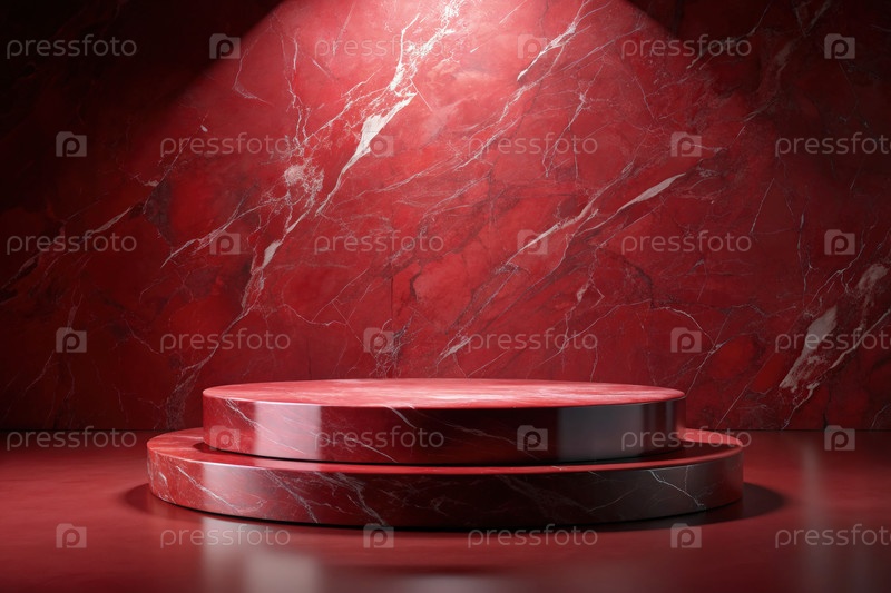 Красный мрамор с гранитным подиумом для демонстрации продукции. генеративная ИИ