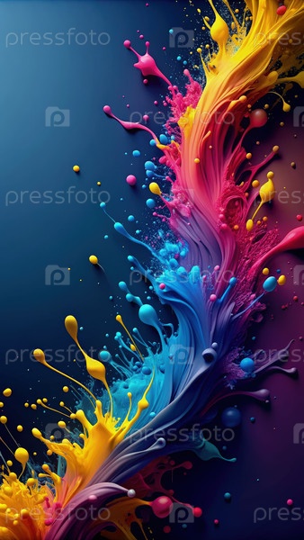 Цветные пятна краски на синем фоне. генеративный AI