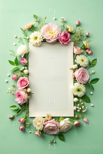 Деликатная цветовая рама на пастельно-зеленом фоне