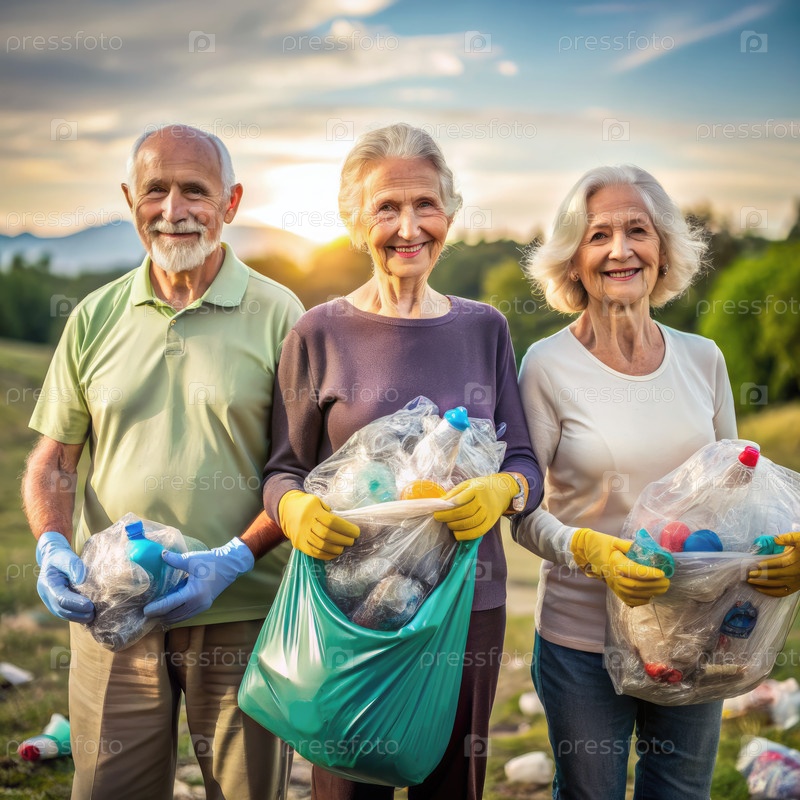 Пожилые граждане добровольно очищают пластиковое загрязнение в парке