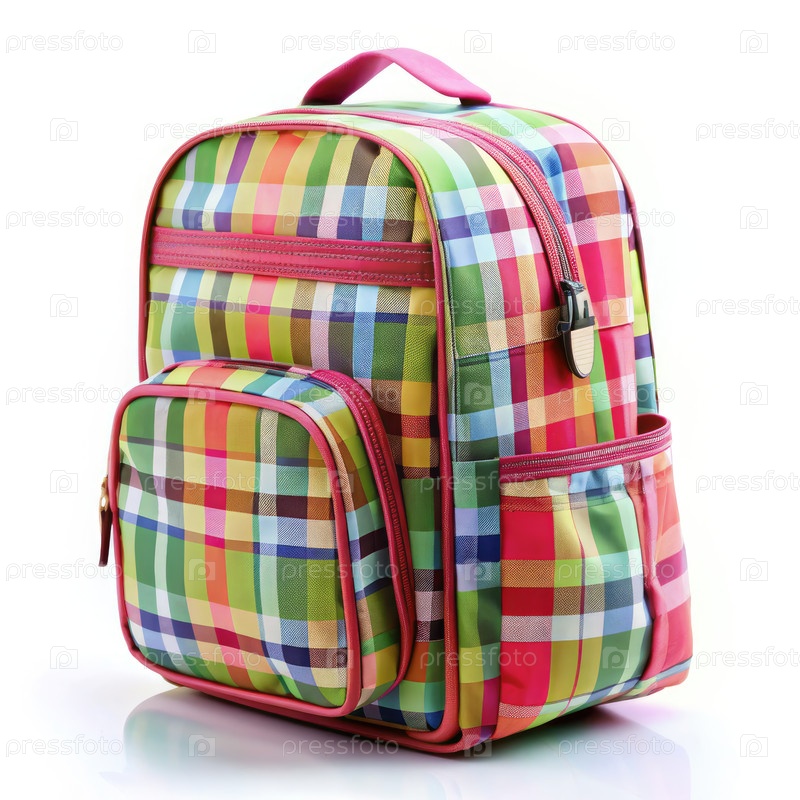 Цветный школьный рюкзак в пластинке изолирован на белом фоне