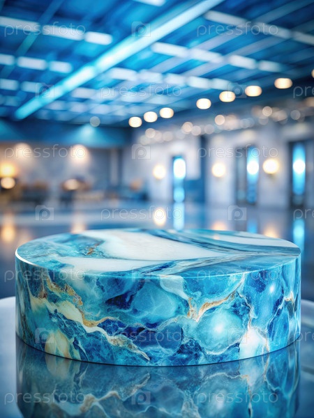 Синий мраморный стенд для рекламной фотографии продукта в современной студии. генеративная ИИ