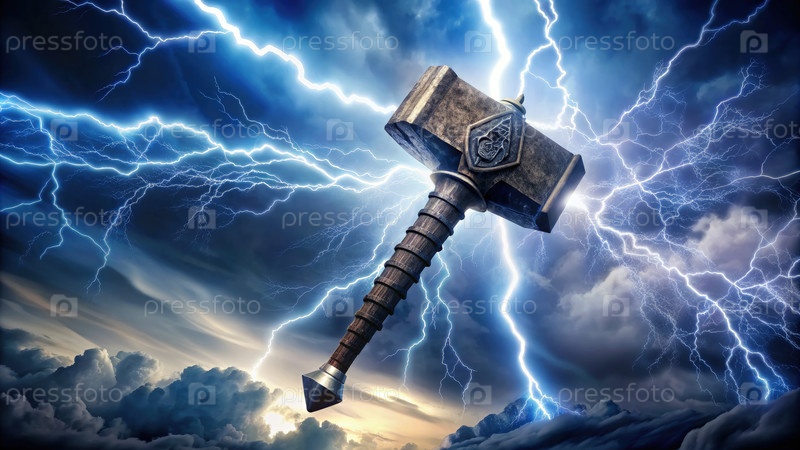 Мьолнир, Торс-Хаммер, посередине грозы. генеративный ИИ