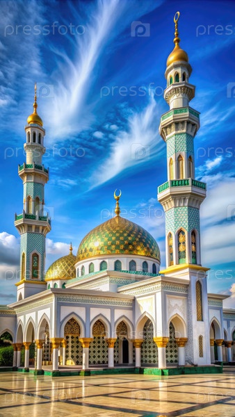 Великая мечеть с золотыми куполами и минаретами под голубым небом