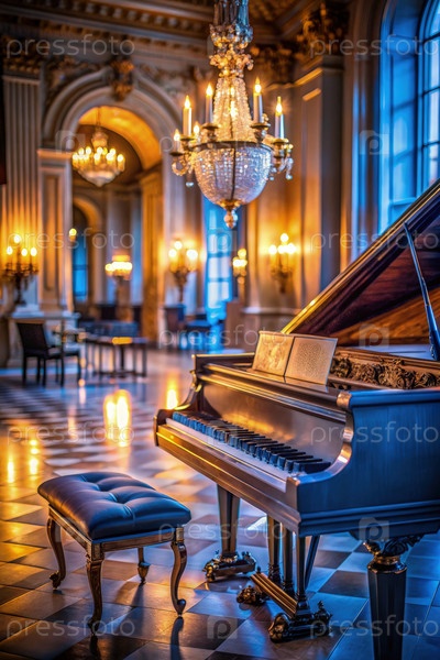 Большое фортепиано во дворце Коридор с кристаллической люстру