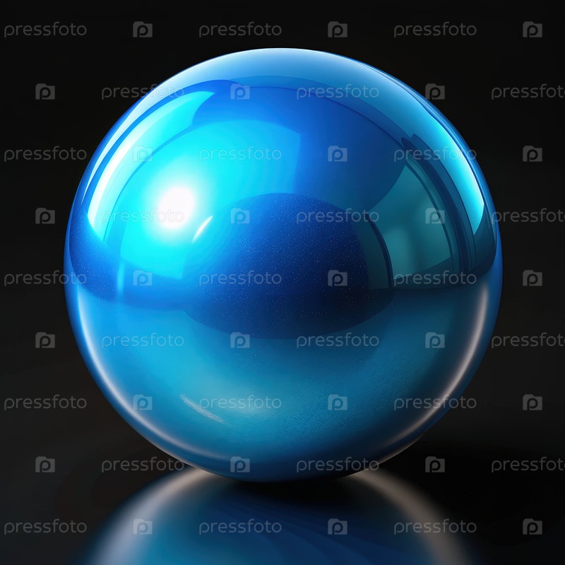 Совершенно круглая голубая металлическая сфера на черном фоне