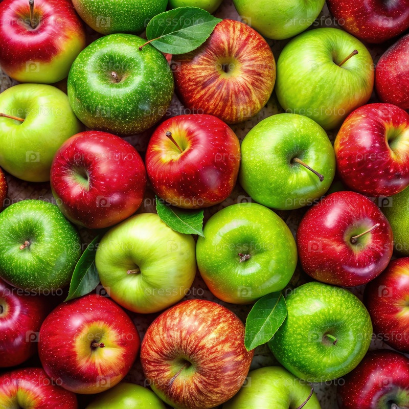 Свежевыбранные красные и зеленые яблоки вблизи. генеративный ИИ