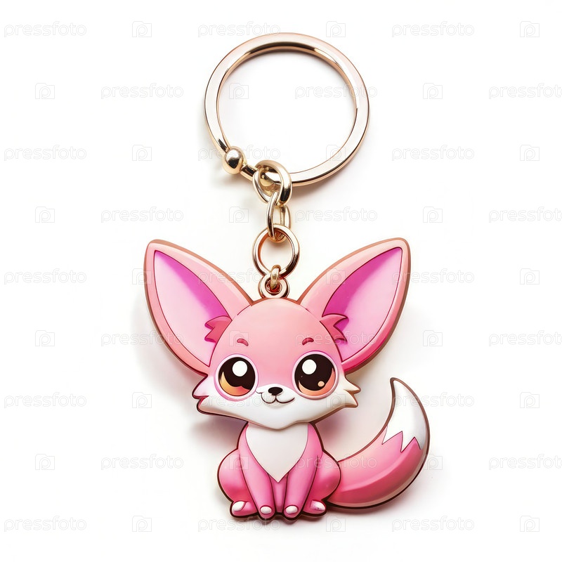 Розовый Fennec Fox Keychain Очарование на белом фоне