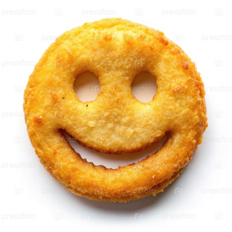 Улыбающийся жареный картофель в форме лица на белом фоне