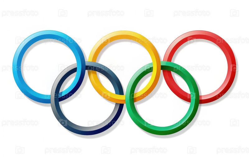 Пять переплетающихся олимпийских колец на белом фоне