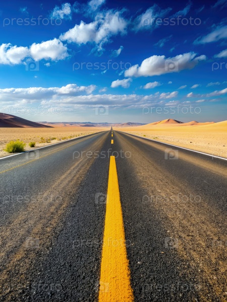 Пустая пустынная шоссе, ведущая к горизонту в солнечный день